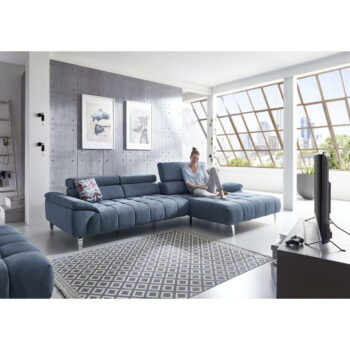 Beldomo Style Ecksofa , Blau , Textil , Uni , 3-Sitzer , Ottomane rechts, nicht einzeln stellbar, L-Form , 329×190 cm , erweiterbar, Typenauswahl, Stoffauswahl, planbar, seitenverkehrt erhältlich, Hocker erhältlich , Wohnzimmer