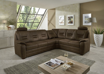 Sie haben eine große Familie oder laden gerne Freunde ein? Dann kommt diese großzügige Wohnlandschaft in Braun mit Federkern wie gerufen. Mit ca. 5 bis 6 Sitzflächen bietet die Ruheoase (Schenkelmaß: ca. 286 x 234 cm) extra viel Platz und bringt all Ihre Liebsten am selben Ort zusammen. Bei einem geselligen Film- oder Spielemarathon lehnen Sie sich entspannt zurück und genießen den Komfort der Bonell-Federkernpolsterung, die durch eine Basis mit Wellenfedern sowie eine Ummantelung mit Polyetherschaum und Polstervlies noch behaglicher wird. So punktet das Innenleben der Couch mit einer optimalen Stützkraft, damit auch lange Abende zum gemütlichen Erlebnis werden. Ein optisches Highlight ist der edle Bezug im Lederlook. Dieser präsentiert sich in einer natürlichen Braunnuance und ist mit Kontrastnähten in Beige geziert. Eckige Füße aus Holz sind auf das Design abgestimmt und verleihen ihm den Feinschliff. Dadurch entsteht eine behagliche Atmosphäre, in der Sie sich rundum wohlfühlen werden. Auf dieser Wohnlandschaft in Braun mit Federkern verbringen Sie Ihre Auszeit in bester Gesellschaft! Gegen Aufpreis erhalten Sie in unseren Filialen sowie online auf Anfrage zahlreiche Varianten, Farbalternativen, Zubehörteile – wie Kopfstützen, eine Bettfunktion oder Relaxrücken – und Beimöbel.
