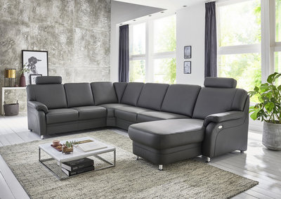 Diese Wohnlandschaft beeindruckt mit exklusivem Komfort und zeitloser Eleganz. Die sanften Linien des Designs werden von der dezenten Farbgebung in Schwarz optimal untermalt. Der Bezug aus Echtleder sorgt für eine moderne, matte Optik und unterstützt gleichzeitig Ihren Sitzkomfort durch die Weichheit des Materials. Eine Wellenunterfederung dient als flexible Basis für den Federkern und gewährleistet damit ein angenehmes Sitzen. Hier können Sie abends die Beine hochlegen und Ihren aufgezeichneten Lieblingskrimi ebenso gut genießen wie einen topaktuellen Kinohit. Auf den insgesamt 6 Sitzflächen ist dabei auch genug Platz für Ihre Freunde oder die Familie. Lassen Sie sich von dieser außergewöhnlichen Wohnlandschaft begeistern und entdecken Sie weitere Möbel unserer Hausmarke für behagliches Wohnen!