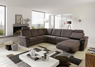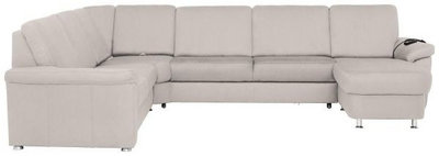 Auf dieser Wohnlandschaft von Beldomo System genießen Sie Ihre Freizeit. Dank des großzügigen Umfangs von ca. 240 x 330 x 163 cm strecken Sie nach Herzenslust Ihre Beine aus oder stoßen beim nächsten Spieleabend mit guten Freunden an. Die hochwertige Federkernpolsterung mit Polyetherschaumkern steht dabei für exzellenten Sitzkomfort. Außerdem werden Sie den cremefarbenen Bezug aus abriebfestem Polyester mögen. Die praktische U-Form garantiert Ihnen sowie 5 weiteren Gästen ein bequemes Sitzen. Profitieren Sie von einem Polstermöbel, das perfekt auf Ihre Wünsche abgestimmt ist! Gegen Aufpreis erhalten Sie in unseren Filialen zahlreiche Varianten, Farbalternativen, Zubehörteile und Beimöbel.