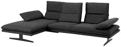 Jetzt relaxen Sie mit Stil – auf Ihrer neuen Wohnlandschaft in Anthrazit mit Sitztiefenverstellung. Das schlanke Design fügt sich elegant in Ihr Wohnzimmer ein und lässt sich dank echt bezogenem Rücken frei im Raum aufstellen. Auf den schwarzen Kufenfüßen scheint das Ecksofa beinahe zu schweben, sodass der dunkelgraue Textil-Bezug noch besser zur Geltung kommt. Moderne Optik und bester Komfort im optimalen Verhältnis: Auf der Polsterung mit einem in Schaumstoff eingearbeiteten Federkern lassen Sie ganz entspannt die Seele baumeln. Lieber aufrecht sitzend oder bequem zurückgelehnt – die integrierte Sitztiefenverstellung ermöglicht Ihnen alle Freiheiten. Bei einem Glas Wein strecken Sie die Beine auf der Ottomane links aus. Das Sofa lässt keine Wünsche offen: Gegen Aufpreis erhalten Sie in unseren Filialen sowie online auf Anfrage zahlreiche Varianten, Farbalternativen, Zubehörteile und Beimöbel. Ergänzen Sie die Couch beispielsweise mit einer Kopfteilverstellung oder einem großzügigen Hocker. Machen Sie es sich gemütlich auf Ihrer ca. 164 x 291 cm (Schenkelmaß) großen Wohnlandschaft in Anthrazit mit Sitztiefenverstellung!