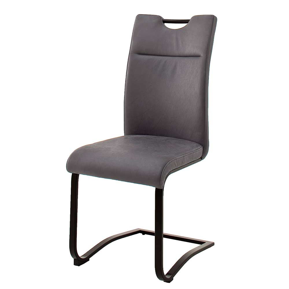 Freischwinger in Grau und Schwarz Leder Bezug (2er Set)