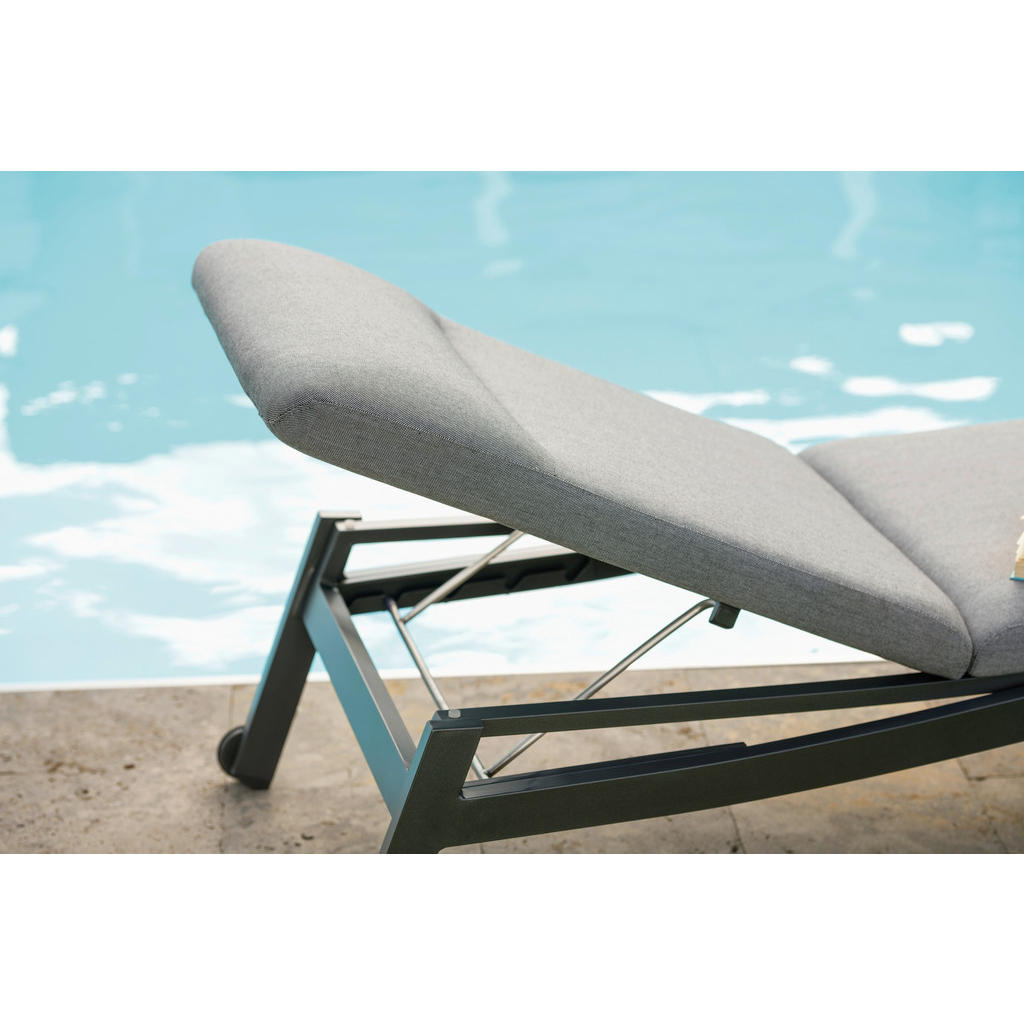 SternGARTENLIEGE, in der Farbe Anthrazit, Grau, aus dem Material Metall, Textil das Material setzt sich aus 8 hervorragend zusammen. Der Artikel hat eine Größe von 70x41x204 cm., die Besonderheiten des Artikels sind wetterfest, wetterbeständig, UV-beständig, rostfrei, Rückenlehne verstellbar.