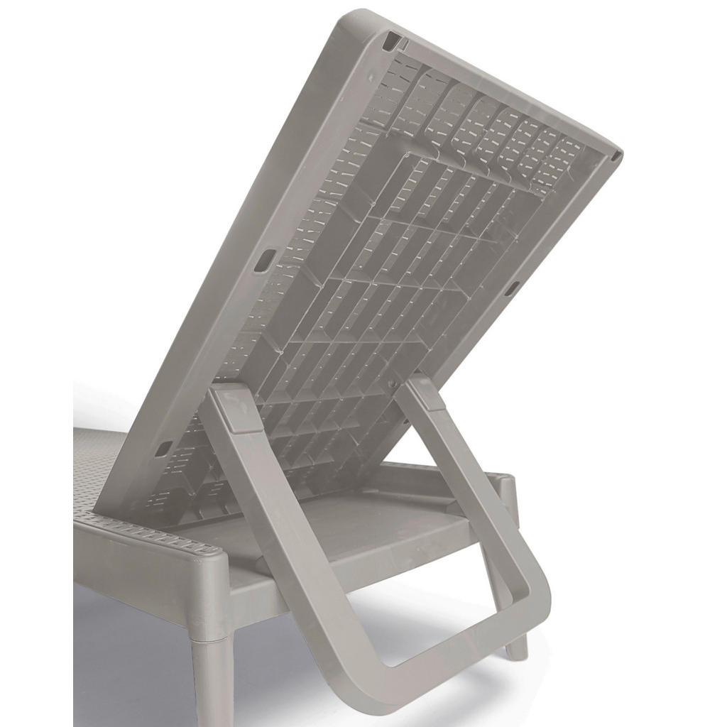 Sonnenliege, in der Farbe Taupe, aus dem Material Kunststoff Der Artikel hat eine Größe von 180x29x60 cm., die Besonderheiten des Artikels sind wetterfest, Rückenlehne verstellbar.